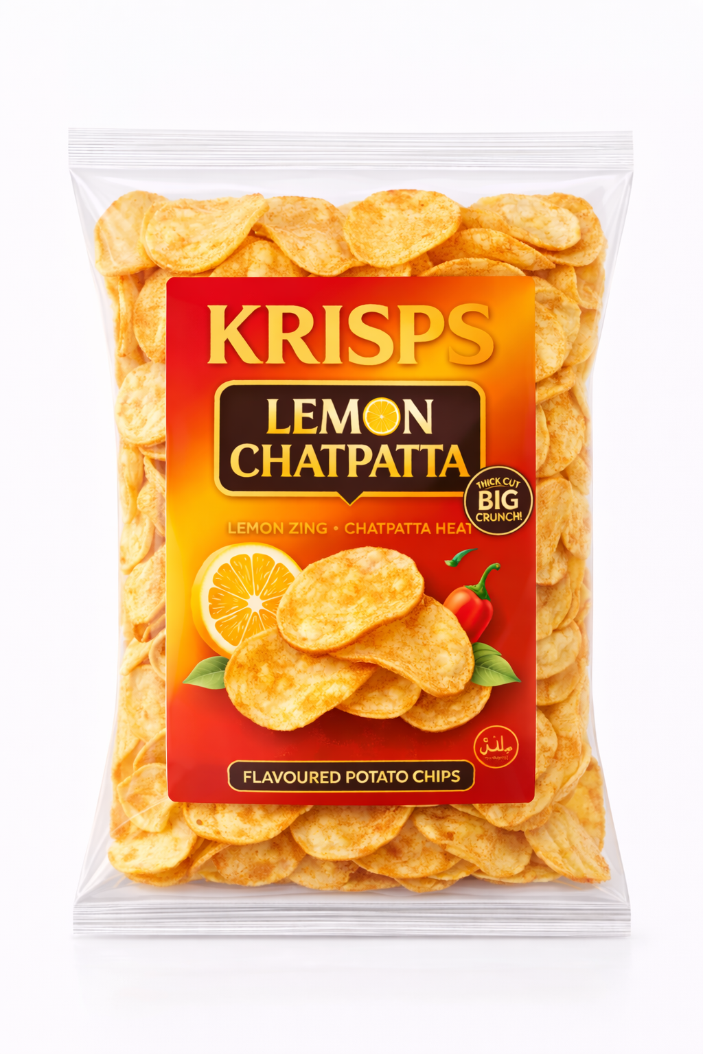 Tangy and spicy Krisps Lemon Chatpatta with a crispy crunch. A flavorful snack perfect for everyday enjoyment.